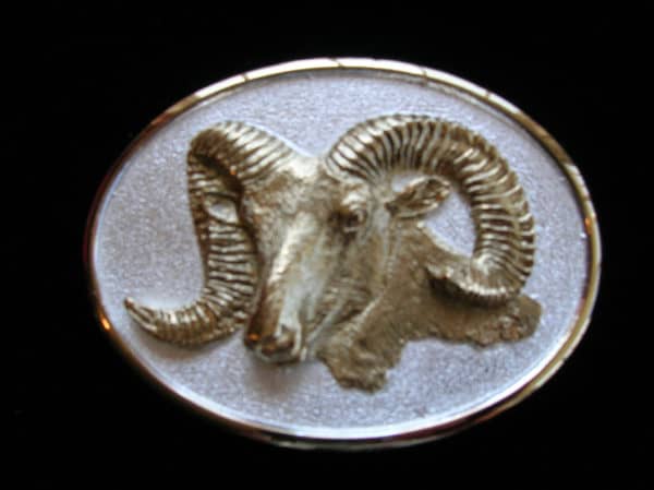 Rocky Mountain Bighorn Sheep (Wild Sheep) belt buckle cast in sterling silver with gold overlay.
